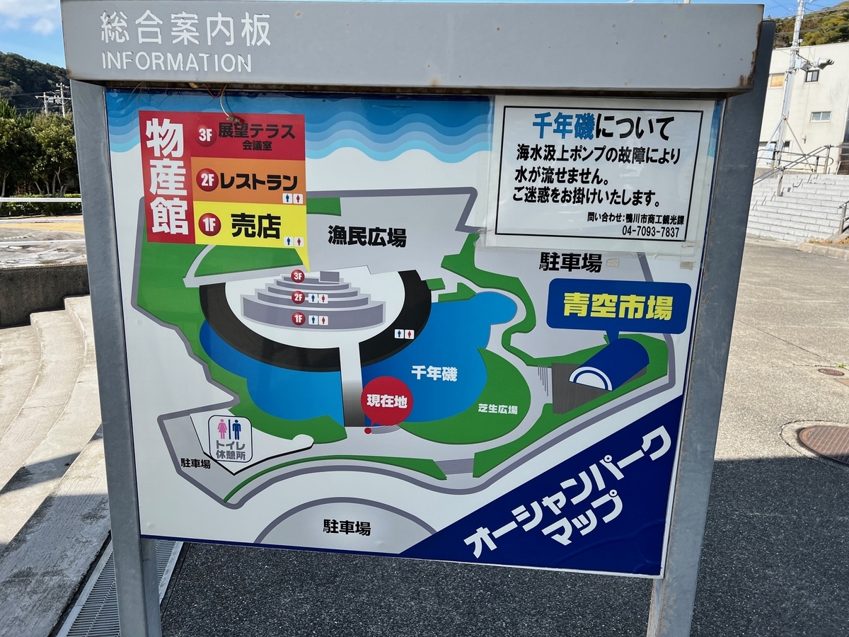 「道の駅 鴨川 オーシャンパーク」、鴨川市の中心部からは少し離れていますが、館山方面から国道で鴨川方面に行く際、街中に入る前に良い休憩場所です。食事やお土産物を買うのにもいいですし、何より天気の良い日には海の景色がすばらしいです。本文にも書きましたが、今度はランチがてら訪れてみたいと思います。